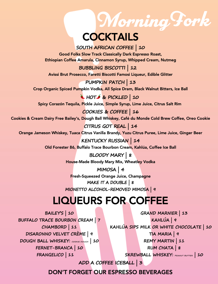 Old Forester 86 Bourbon, Amaro, Cold Brew Coffee, Demerara Syrup, Whipped Cream