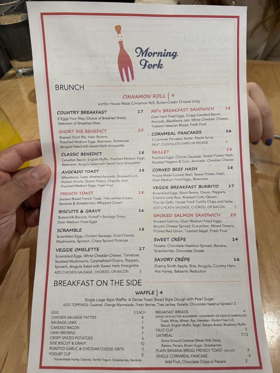 Scrambled Eggs, Chicken Sausage, Spinach, Mushrooms, Goat Cheese, Skillet Potatoes with Peppers & Onions